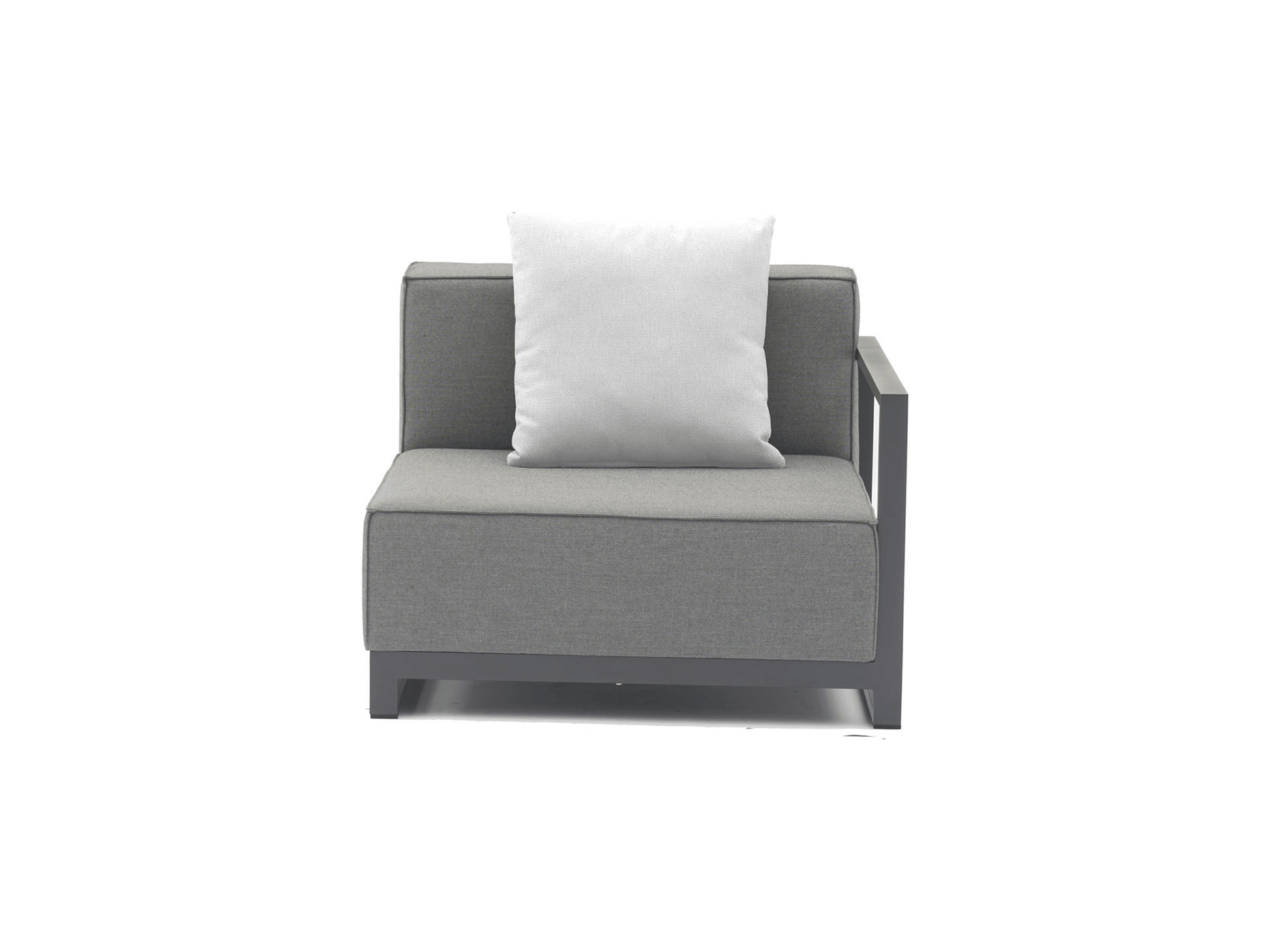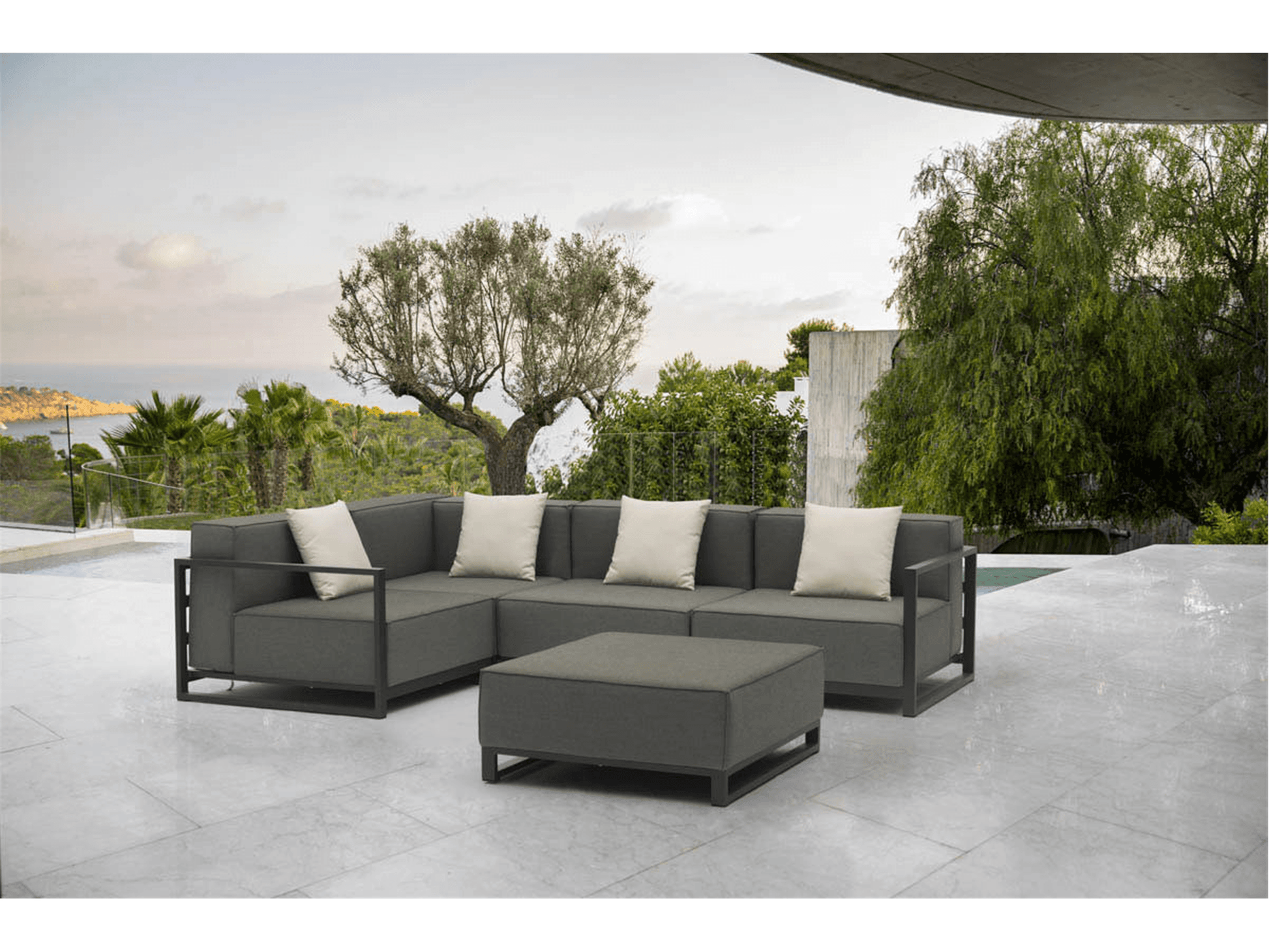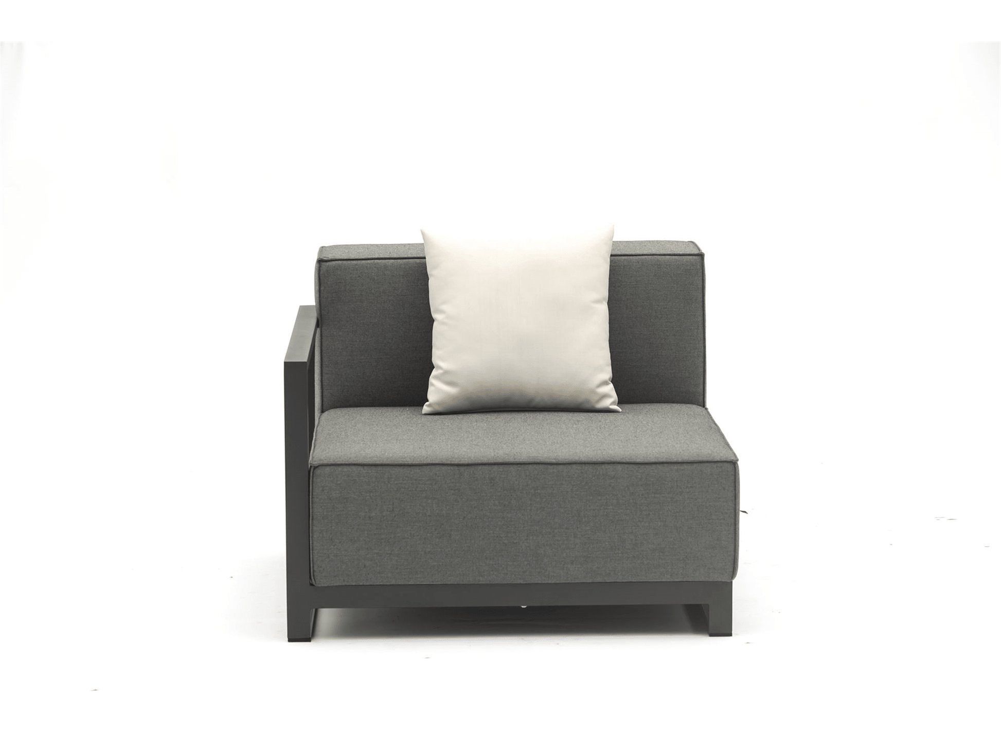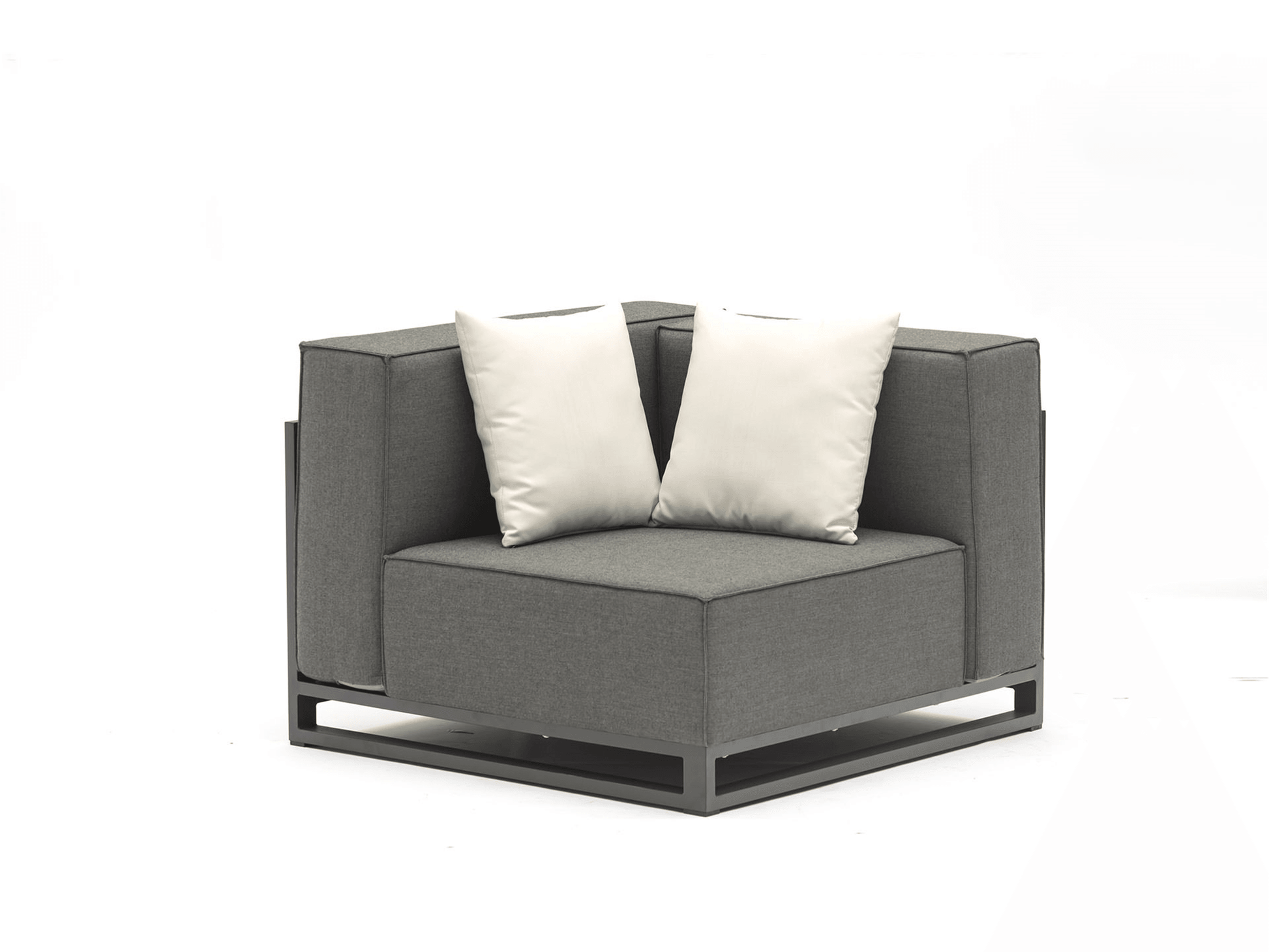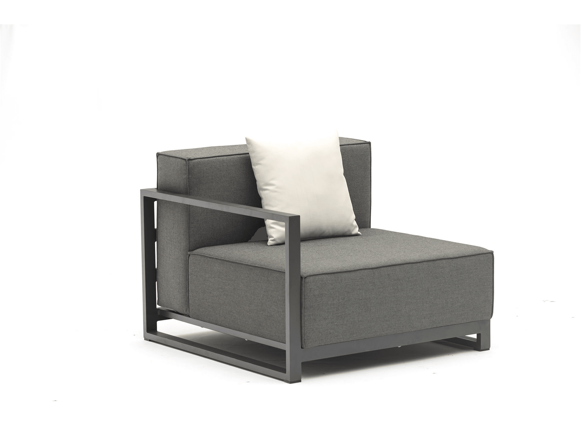 La collezione Lizbeth è un design pulito e lineare, realizzato in tessuto acrilico grigio e struttura in alluminio. Progetta il tuo divano scegliendo la poltrona che preferisci: con bracciolo sinistro (di fronte), con bracciolo destro (di fronte), senza braccioli o angolare.