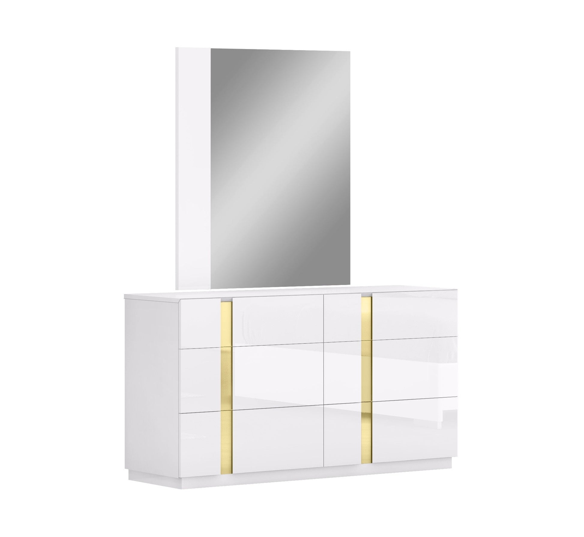 La collezione per la camera da letto Kathy è l'ultima novità della nostra categoria "Camera da letto moderna". La camera da letto Kathy presenta una finitura laccata bianca lucida, impreziosita da dettagli in oro lucido. La testiera è dotata di una striscia luminosa a LED che corre parallela al dettaglio dorato, dividendola orizzontalmente. Tutti i cassetti sono dotati del nostro meccanismo di chiusura ammortizzata di alta qualità. Il design elegante e moderno della collezione Kathy si adatta perfettamente a qualsiasi casa contemporanea.