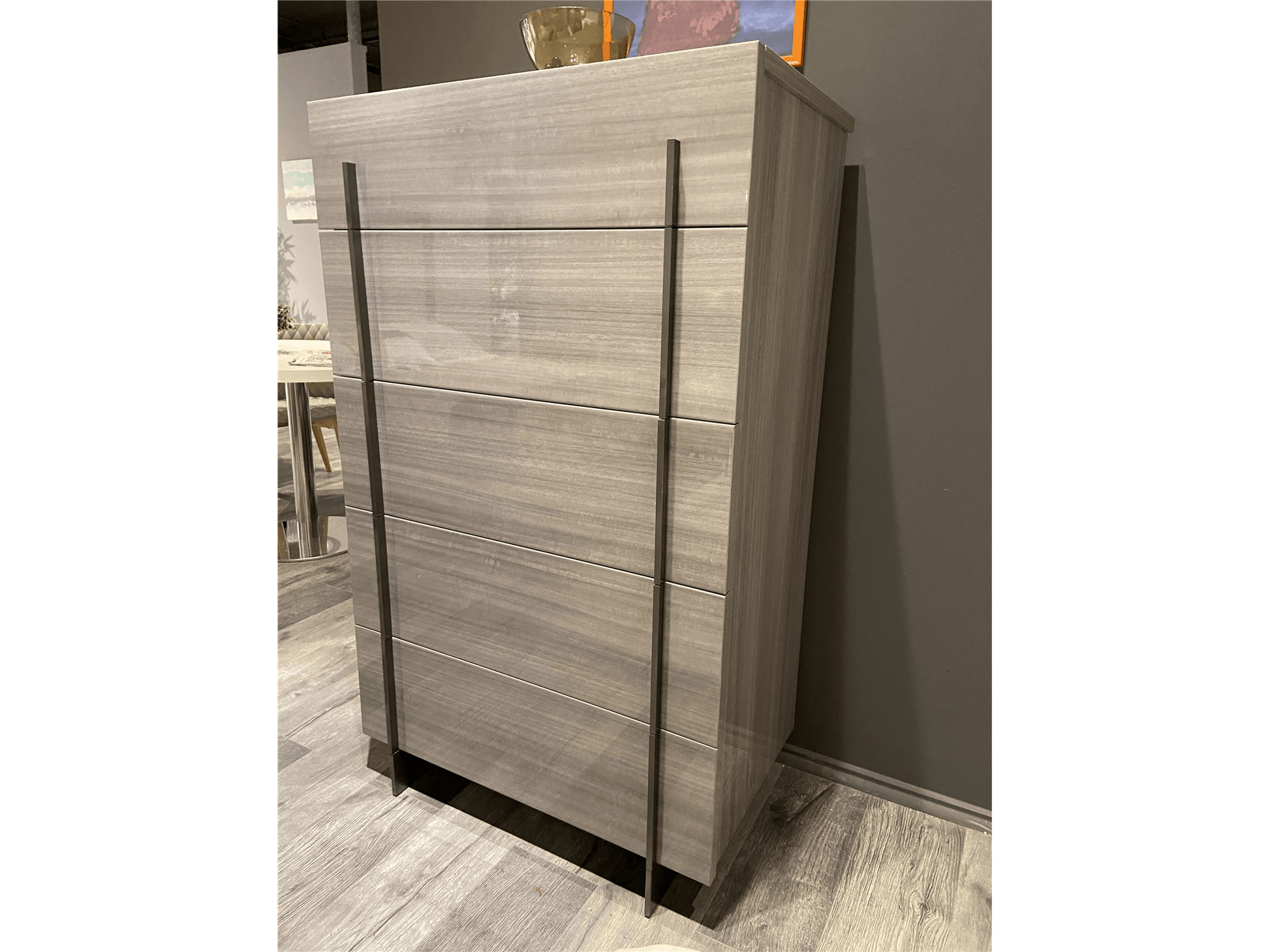 Tutti i cassetti sono dotati di guide di alta qualità, ammortizzate e autochiudenti, con dispositivo di sicurezza per impedire l'estrazione completa. Il movimento fluido e deciso di apertura e chiusura dei cassetti trasmette un senso di lusso. I cassetti sono completamente rivestiti in materiale simil-tessuto, resistente a graffi e macchie.