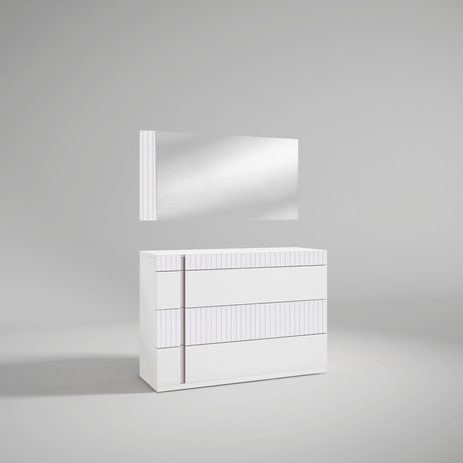 Questa elegante camera da letto spagnola presenta un sofisticato mix di design moderno e texture lussuose. Il letto vanta una testiera imbottita e soffice con un morbido motivo geometrico, che aggiunge un tocco di raffinatezza e comfort. Rivestito in un grigio pallido, si abbina perfettamente all'arredamento circostante, creando un'atmosfera calma e accogliente. I comodini sono minimalisti ma eleganti, con finitura bianca lucida e sottili scanalature che ne esaltano il look contemporaneo. Ogni comodino ospita una lampada moderna ed elegante, che dona calore e luce ambientale. Dietro il letto, la parete presenta uno splendido sfondo effetto marmo nei toni della terra, che crea una texture naturale e spettacolare che si abbina alla serena combinazione di colori. Un delicato lampadario a sospensione con forme bianche pendenti scende a cascata dall'alto, donando un senso di movimento ed eleganza. Questa camera da letto di ispirazione spagnola combina l'eleganza moderna con il lusso naturale, rendendola un rifugio senza tempo.
