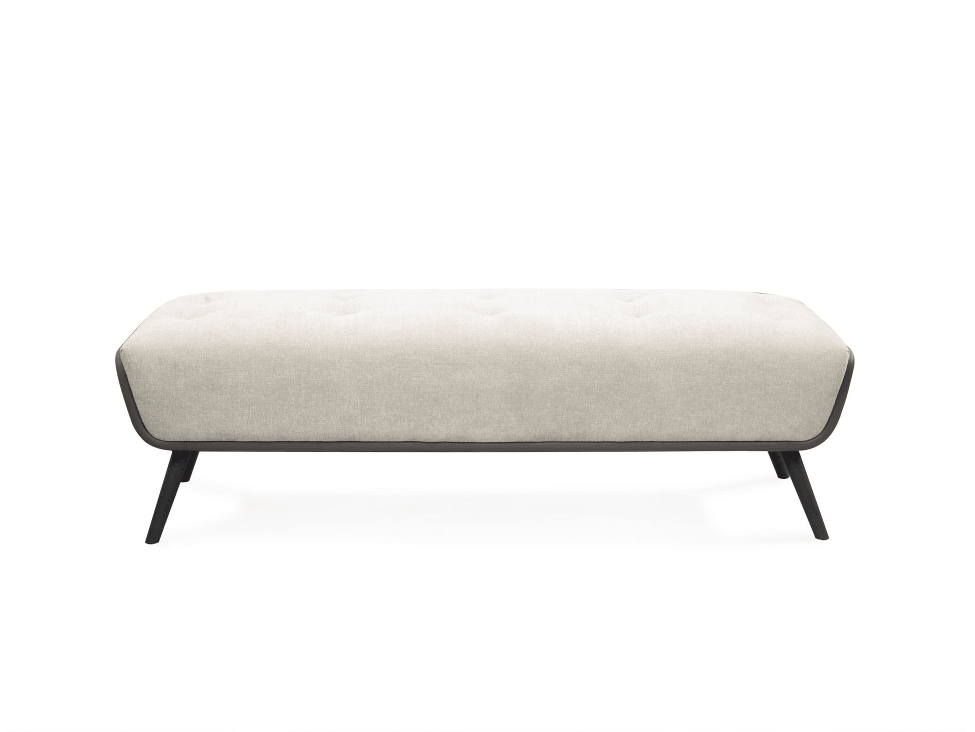 La panca Forester è realizzata in similpelle beige e gambe in acciaio verniciato nero sabbiato.