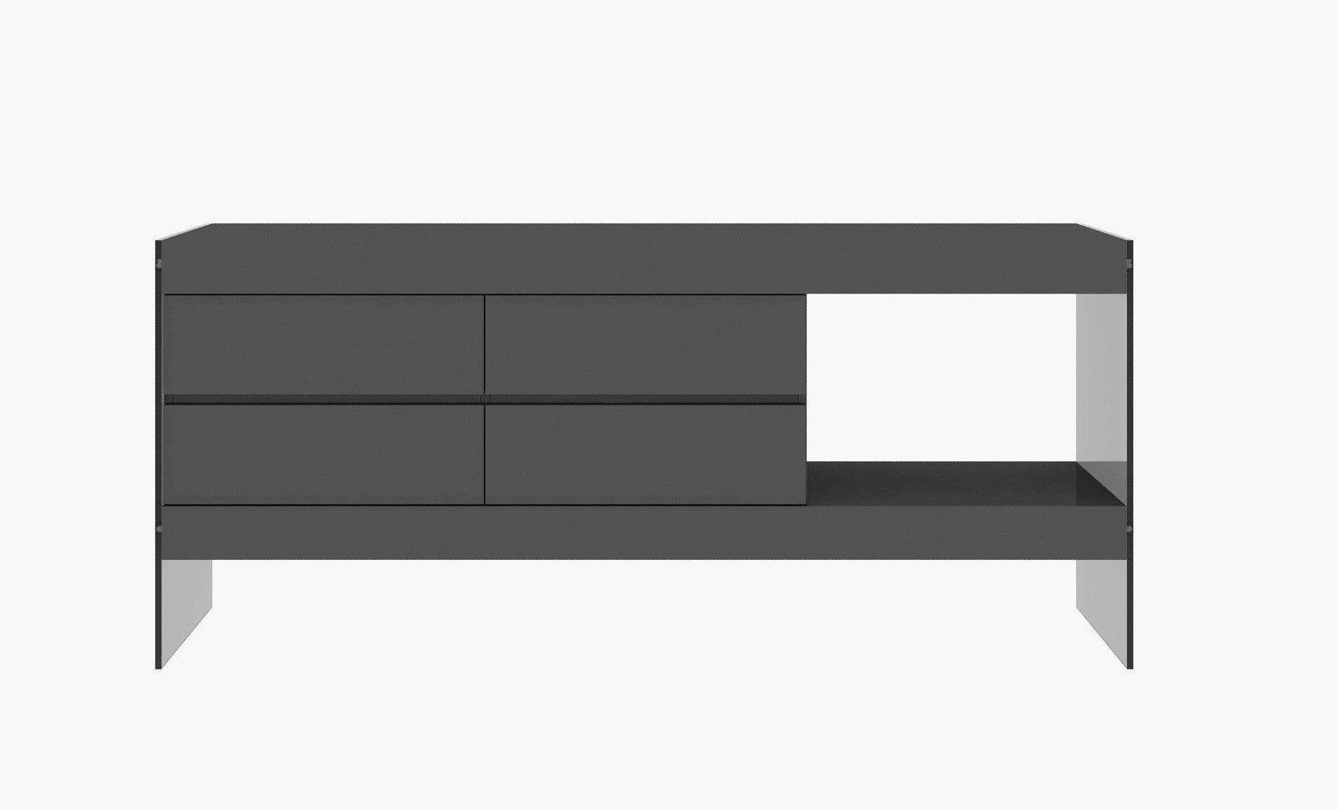 La credenza moderna Float offre un design contemporaneo con un leggero tocco classico. La resistente struttura in legno conferisce a questo set un aspetto ultramoderno. La base in vetro, unita alla struttura in legno, conferisce un tocco di unicità incomparabile. Disponibile in grigio o bianco.