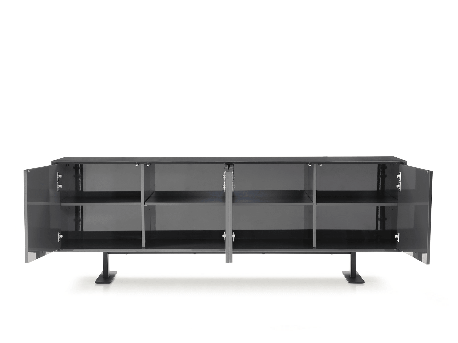 Questa credenza è la soluzione perfetta per qualsiasi stanza che necessiti di spazio extra. Con un design contemporaneo e una finitura grigio scuro lucido, questa credenza sarà un'aggiunta fantastica al vostro arredamento. La base in metallo garantisce una solida base.