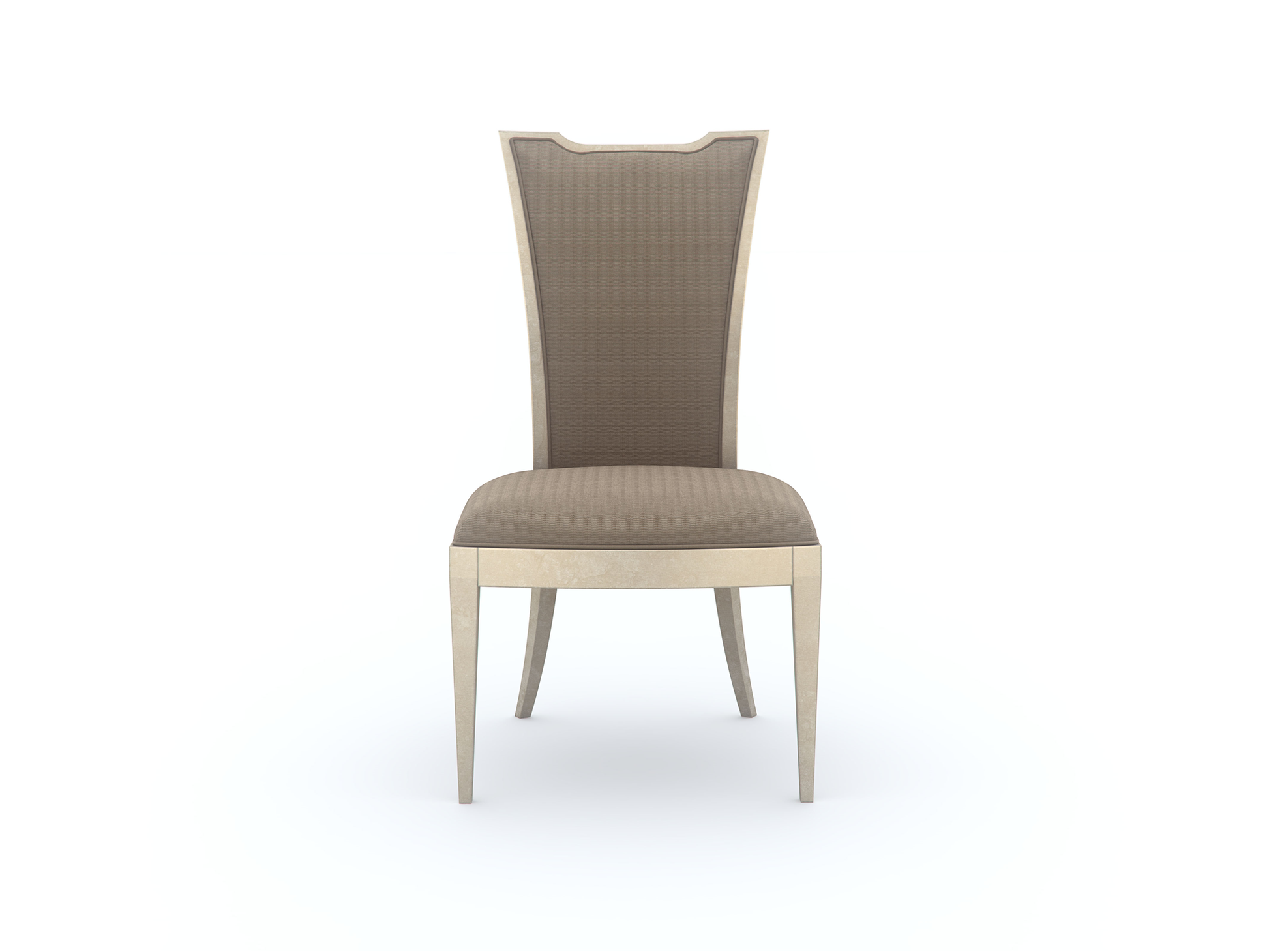 Accomodatevi e rilassatevi con stile con questa sedia di tendenza. La sua silhouette accattivante è rifinita in foglia d'argento e si abbina perfettamente alla seduta, alla parte anteriore e posteriore imbottite. Progettata per l'intrattenimento, è perfetta sia per i pasti informali di tutti i giorni che per le vacanze e le feste.