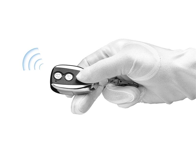 Motorizzato Include: batteria al litio da 12 V / caricabatterie da 110 V / 2 telecomandi / 2 chiavi di sicurezza.