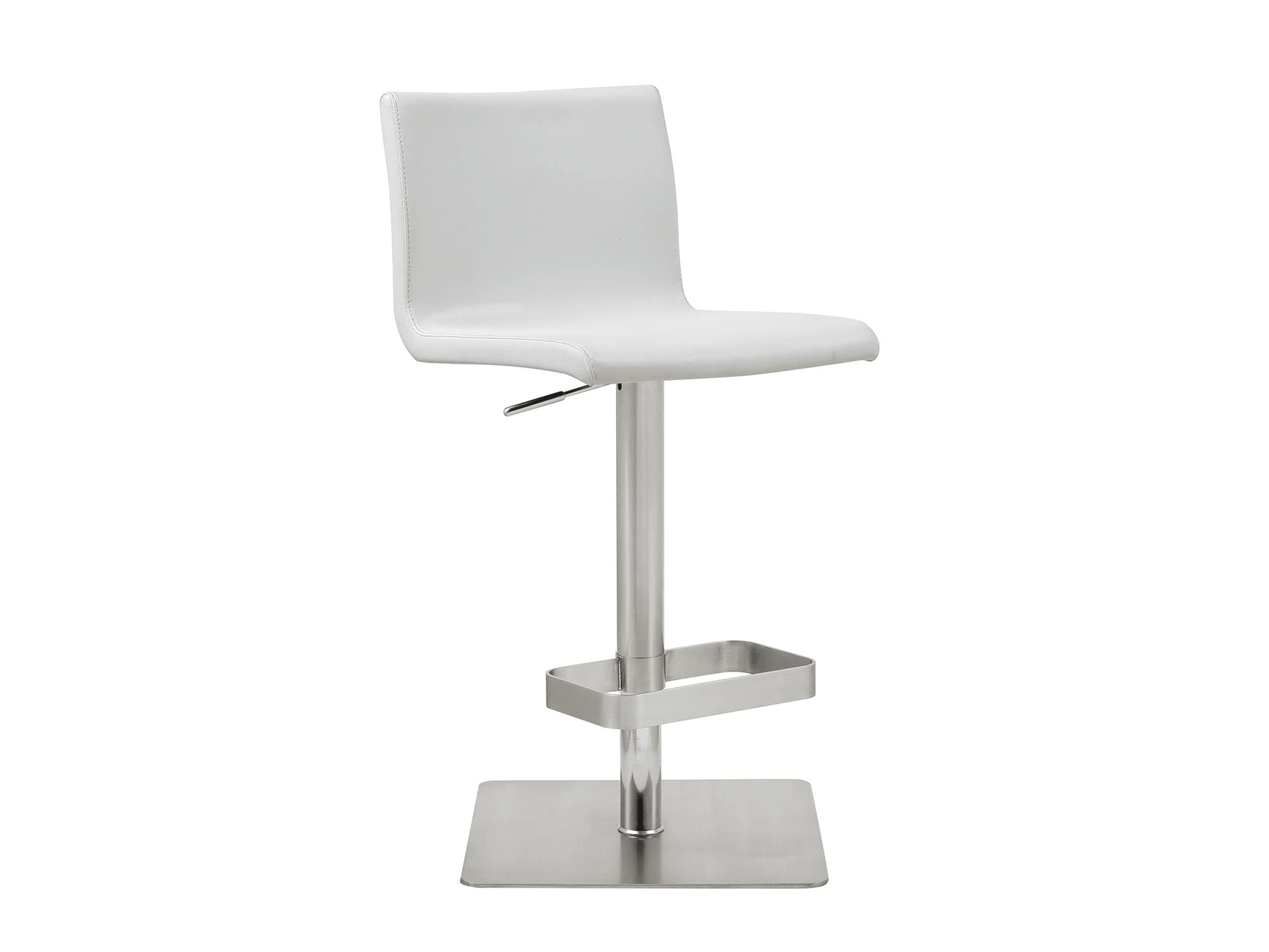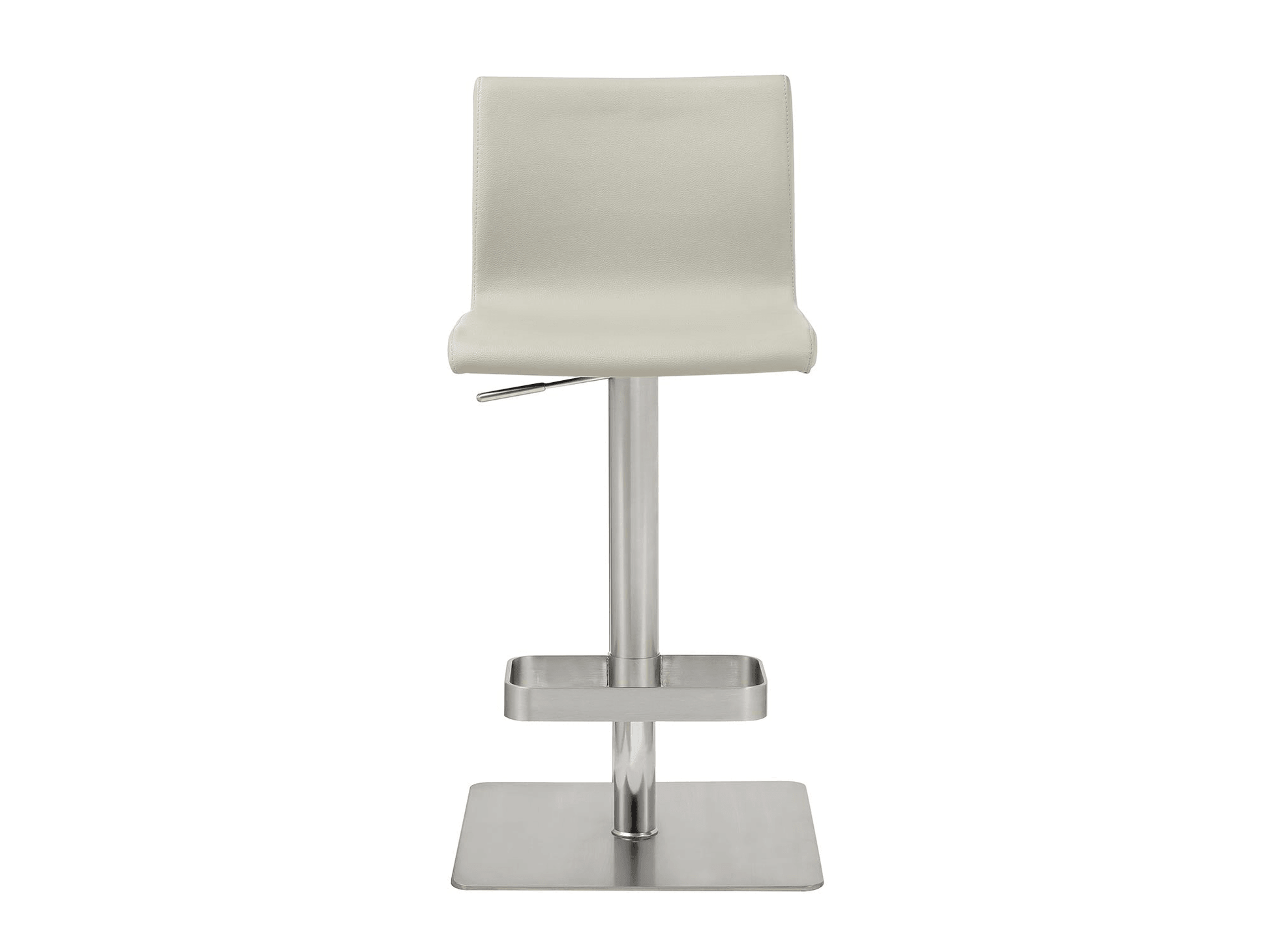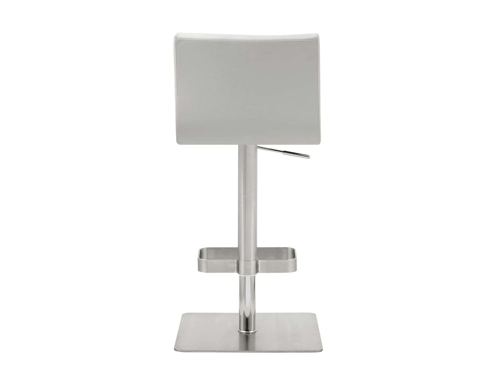 Sgabello da bar Warren l in similpelle grigio chiaro o bianca, di qualità commerciale. Altezza regolabile e base quadrata in acciaio inox spazzolato.