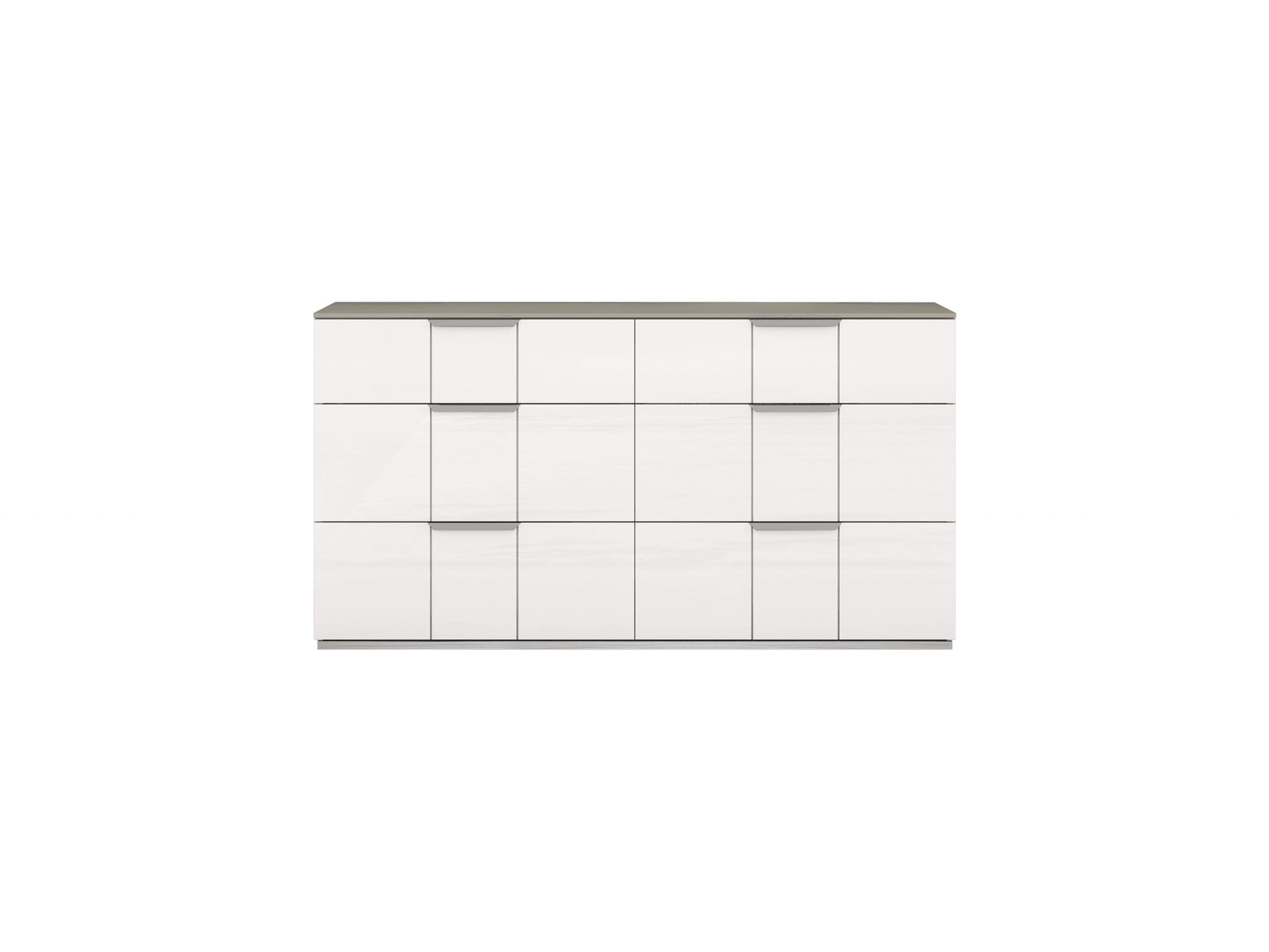 Cassettiera Daisy, disponibile in bianco lucido con sei cassetti con chiusura automatica.