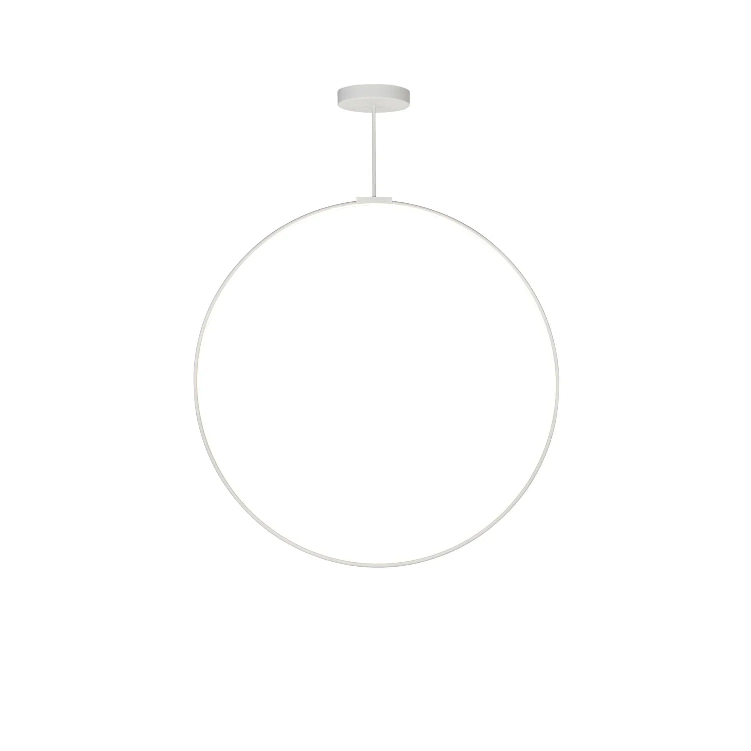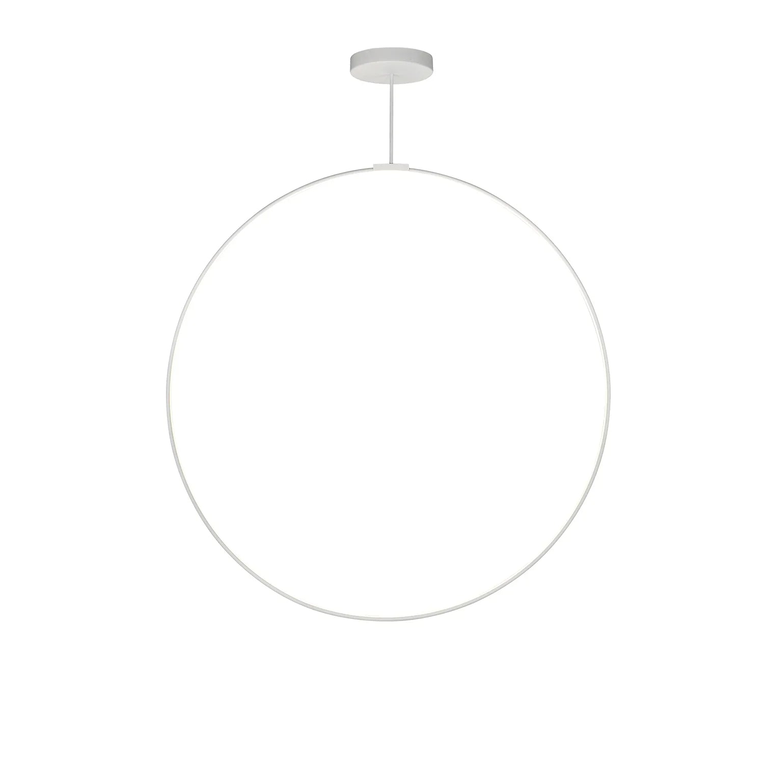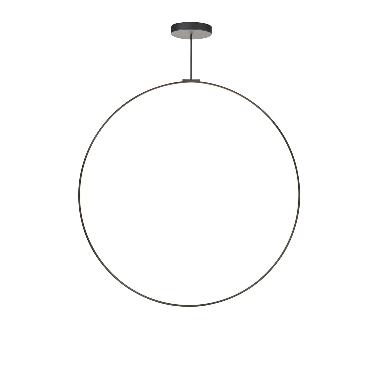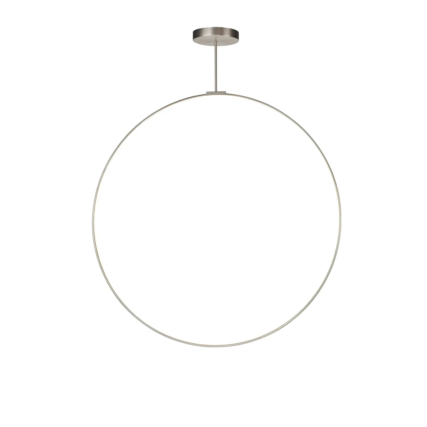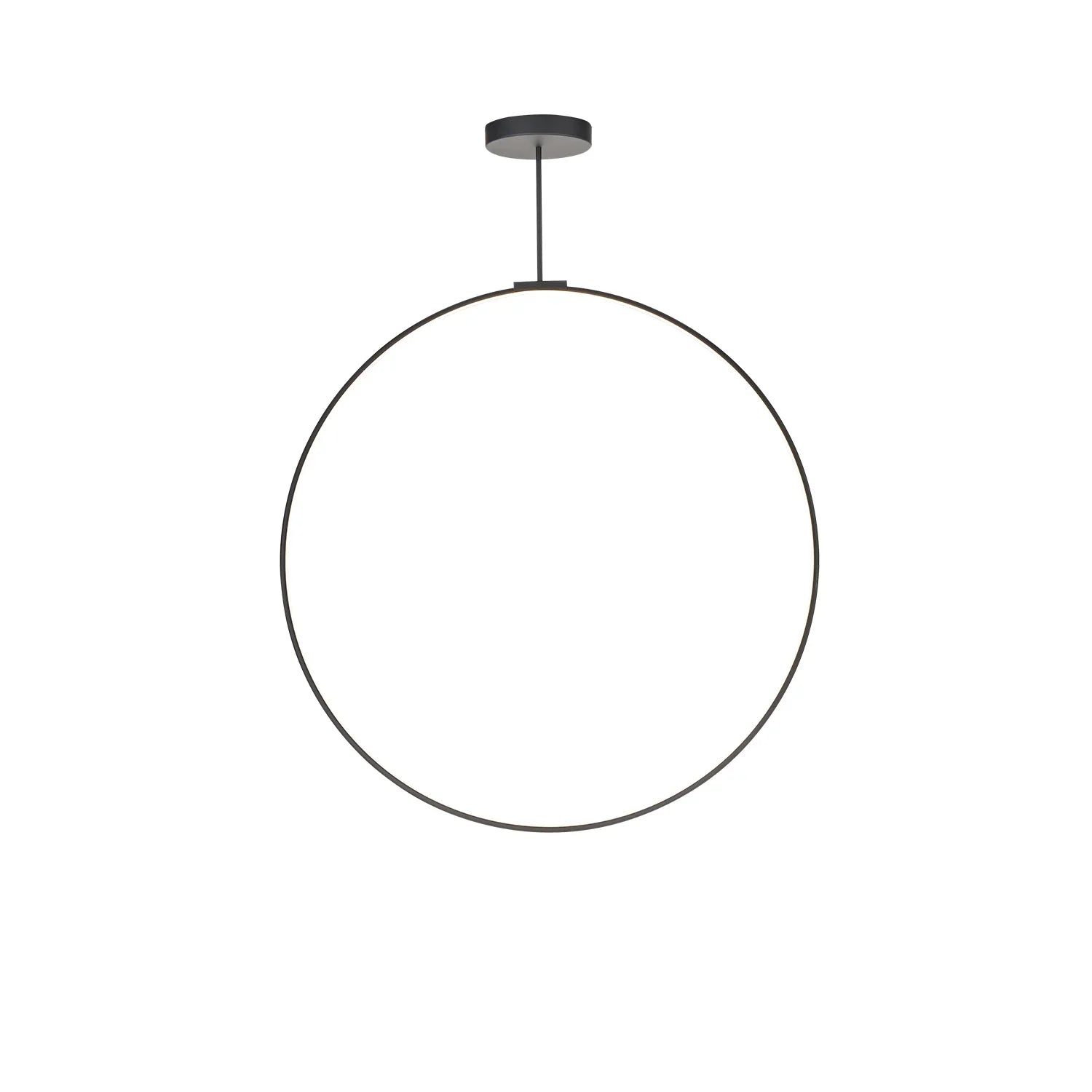 Anello in alluminio con attacco circolare a soffitto. Profilo circolare. Diffusore flessibile in gomma siliconica. Finiture verniciate a polvere metallizzate e opache. Luce verso l'alto e verso il basso.