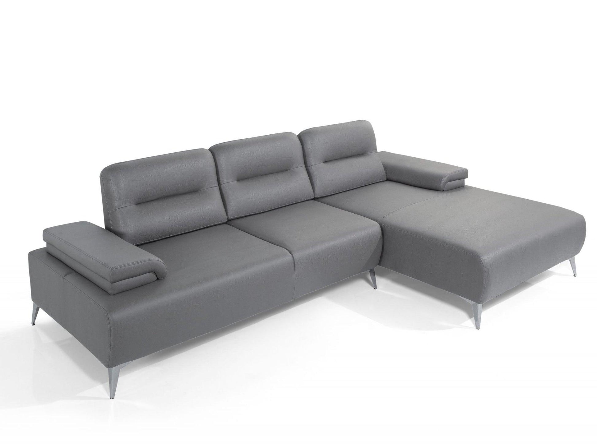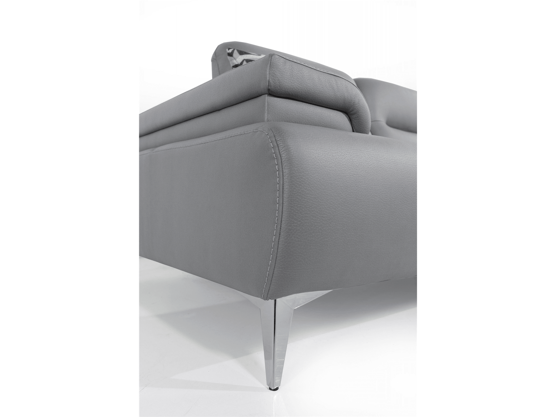 Ruslan Sectional è un divano componibile contemporaneo dalle linee pulite e materiali di alta qualità. È disponibile in pelle nabuk grigio chiaro con chaise longue rivolta verso l'interno, schienale e braccioli estraibili con tre cuscini in lino intrecciato inclusi e gambe in nichel cromato e lucidate.