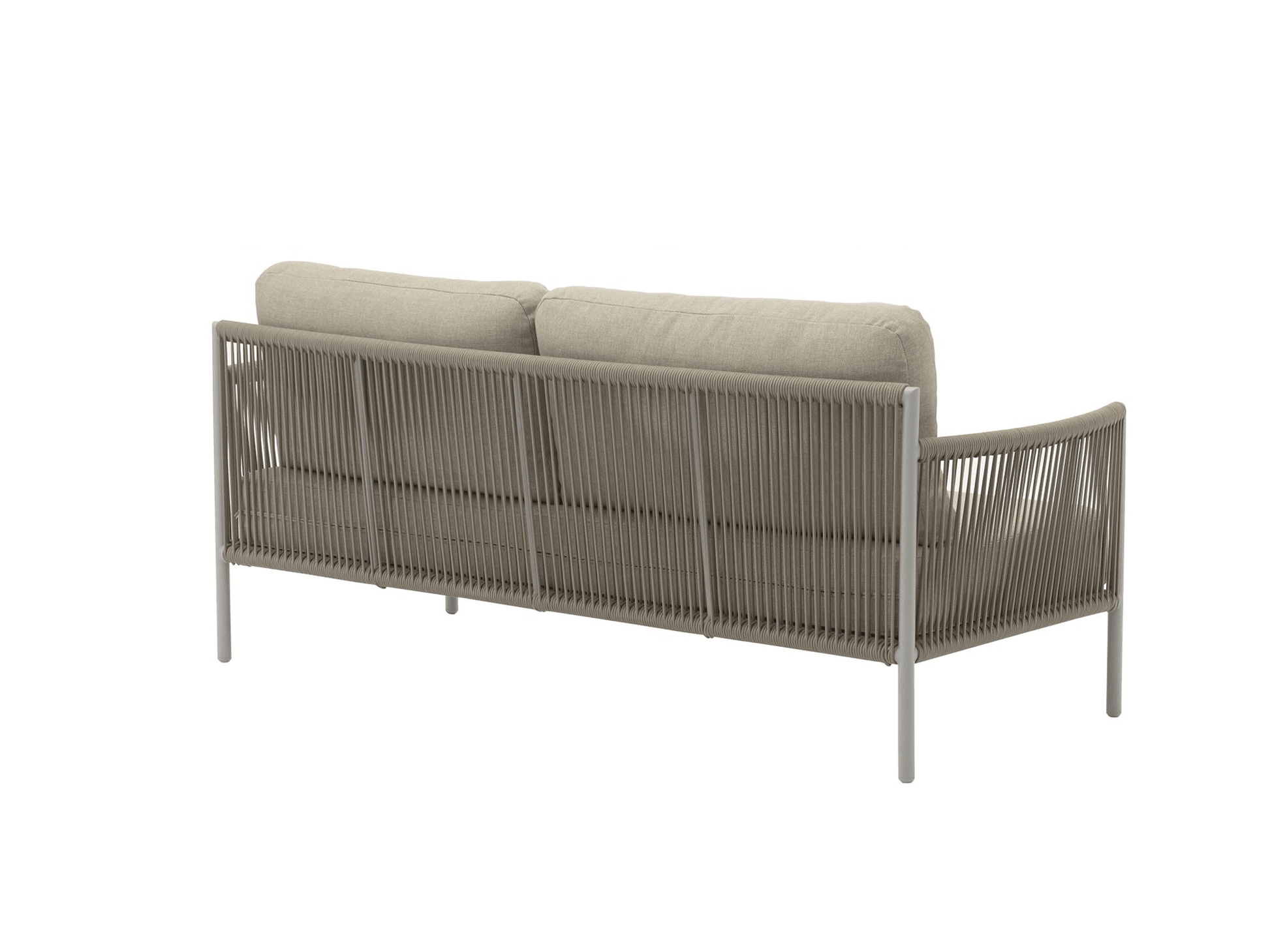 • Collezione per esterni Sempers composta da 4 pezzi in alluminio grigio, corda grigio chiaro, cuscino impermeabile marrone, tavolino da caffè a forma di fiore.