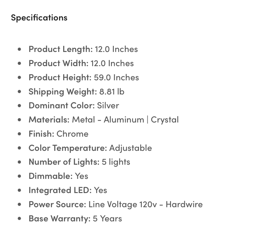Dotato di tecnologia LED integrata, il lampadario Elysian è efficiente dal punto di vista energetico e dimmerabile, consentendo di creare l'atmosfera perfetta per ogni occasione. Si prega di notare che è necessario un dimmer separato, non incluso.