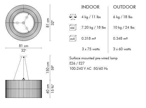 Materiale: Buri (spine di foglie di palma), acciaio verniciato a polvere, carta fatta a mano, Mylar
