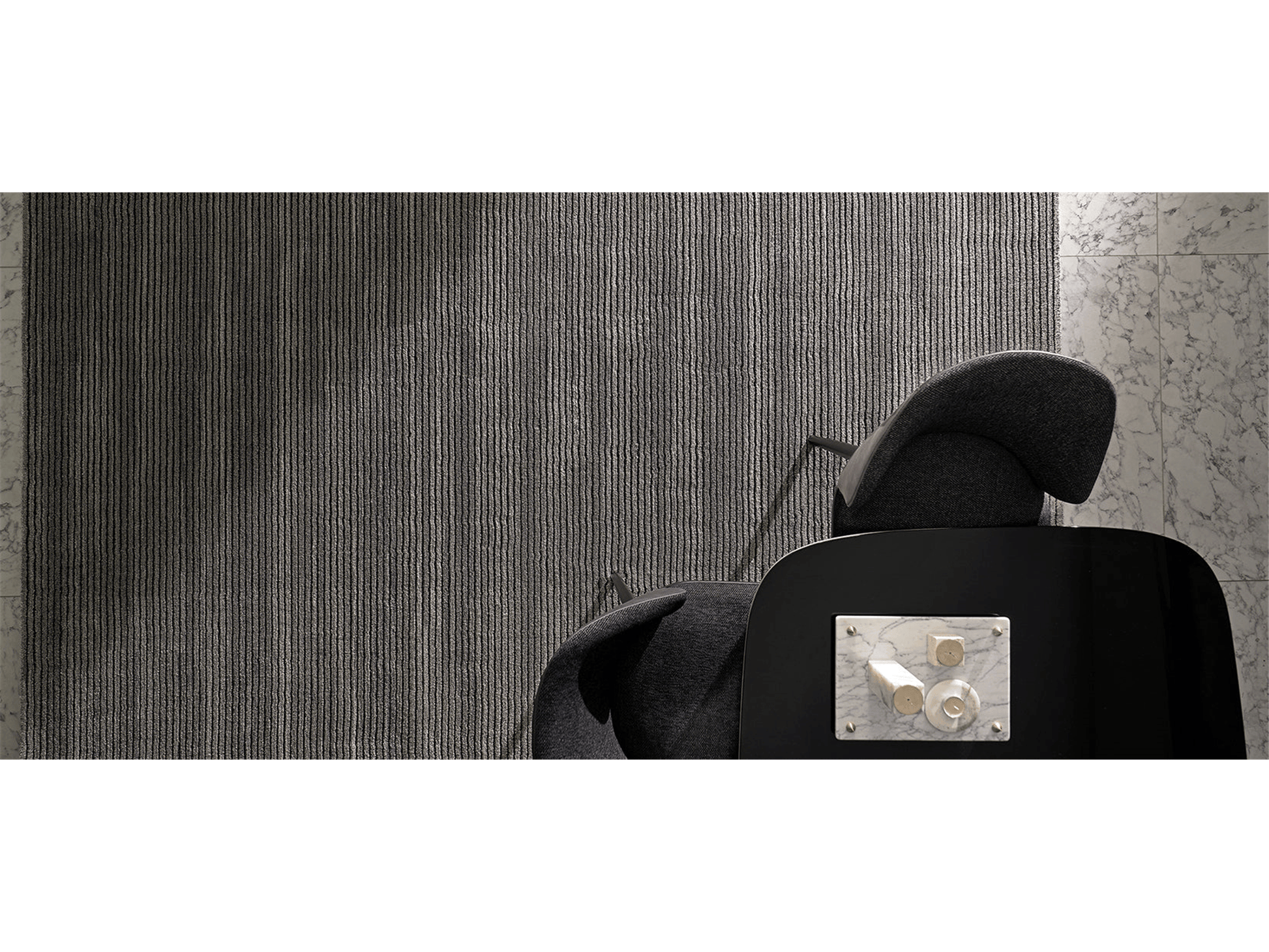 Il tappeto Pipa, che offre un aspetto equilibrato e potente con profonde sfumature di grigio, si adatta facilmente a diversi stili di arredamento grazie al suo design essenziale. Il tappeto Hyper, con la sua struttura antiallergica che non trattiene polvere e sporco, dona un'interpretazione elegante e raffinata agli spazi abitativi.