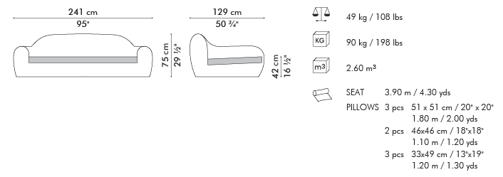 Dimensioni: 241 cm x 75 cm x 129 cm