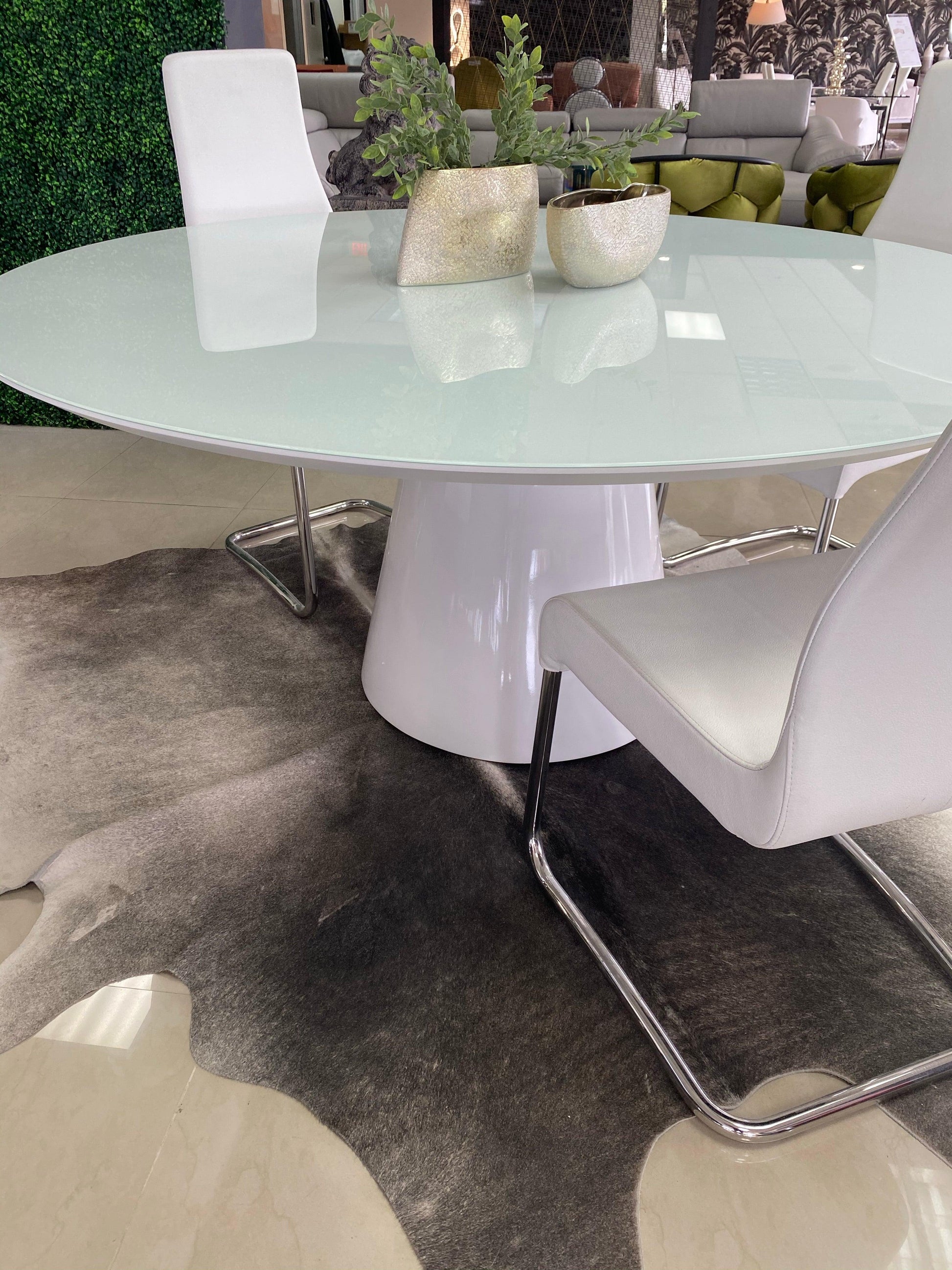 Tavolo Jasmine Blanca 59 con piano in vetro bianco e bianco lucido