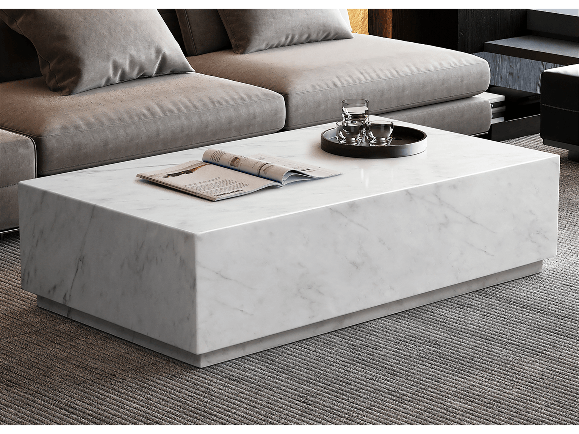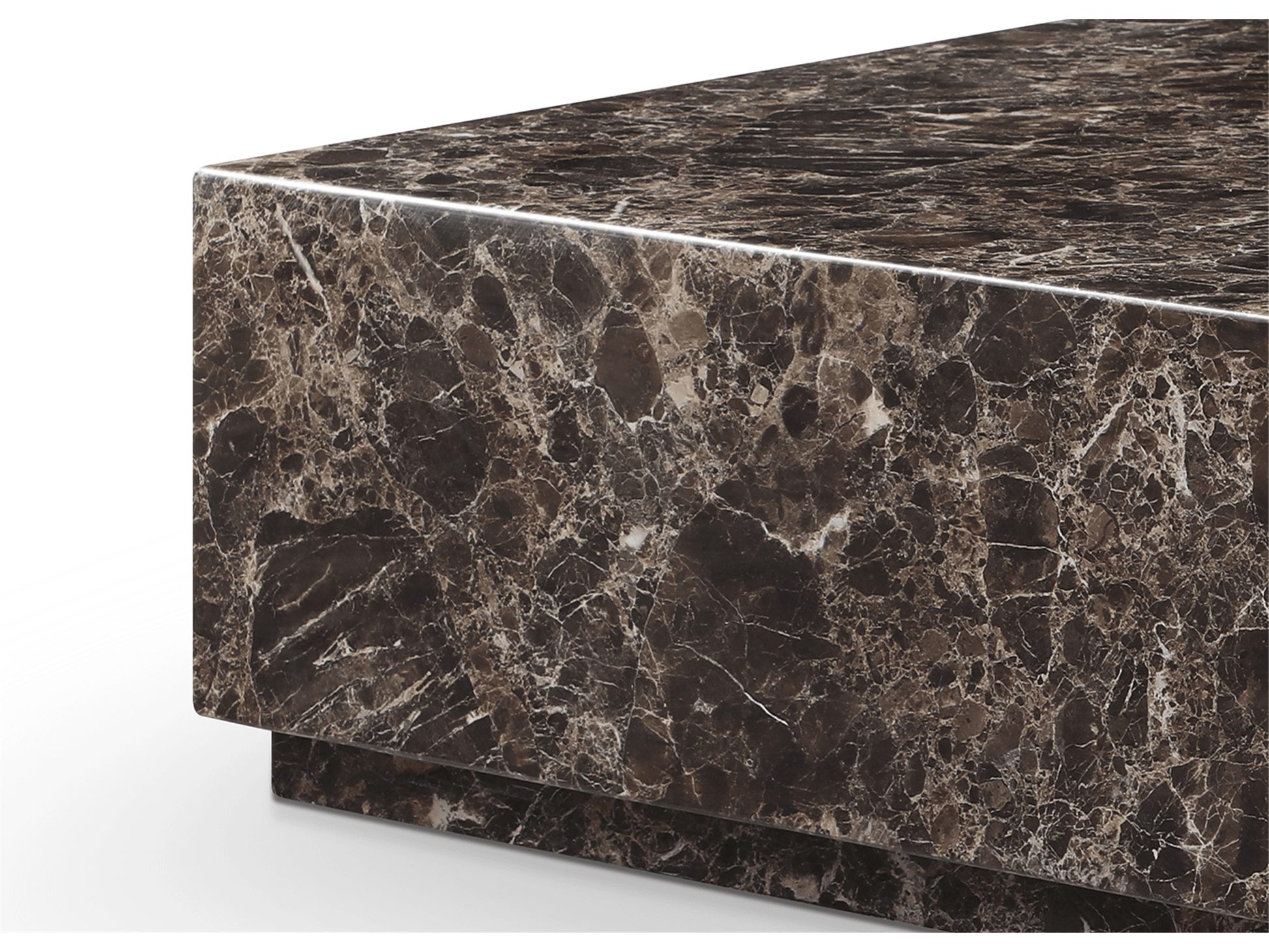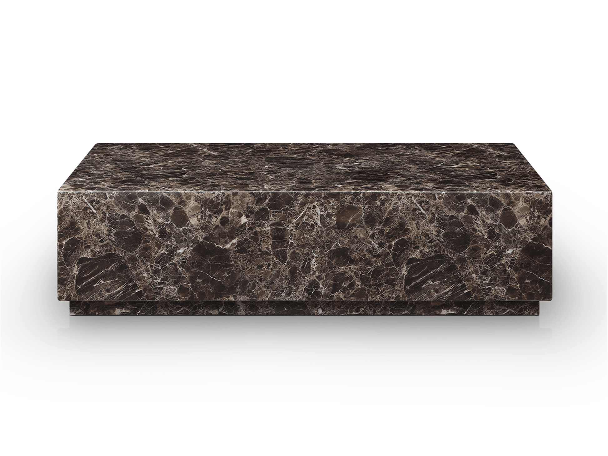 Tavolino da caffè rettangolare Camellia in marmo Dark Emperador lucido con rotelle.