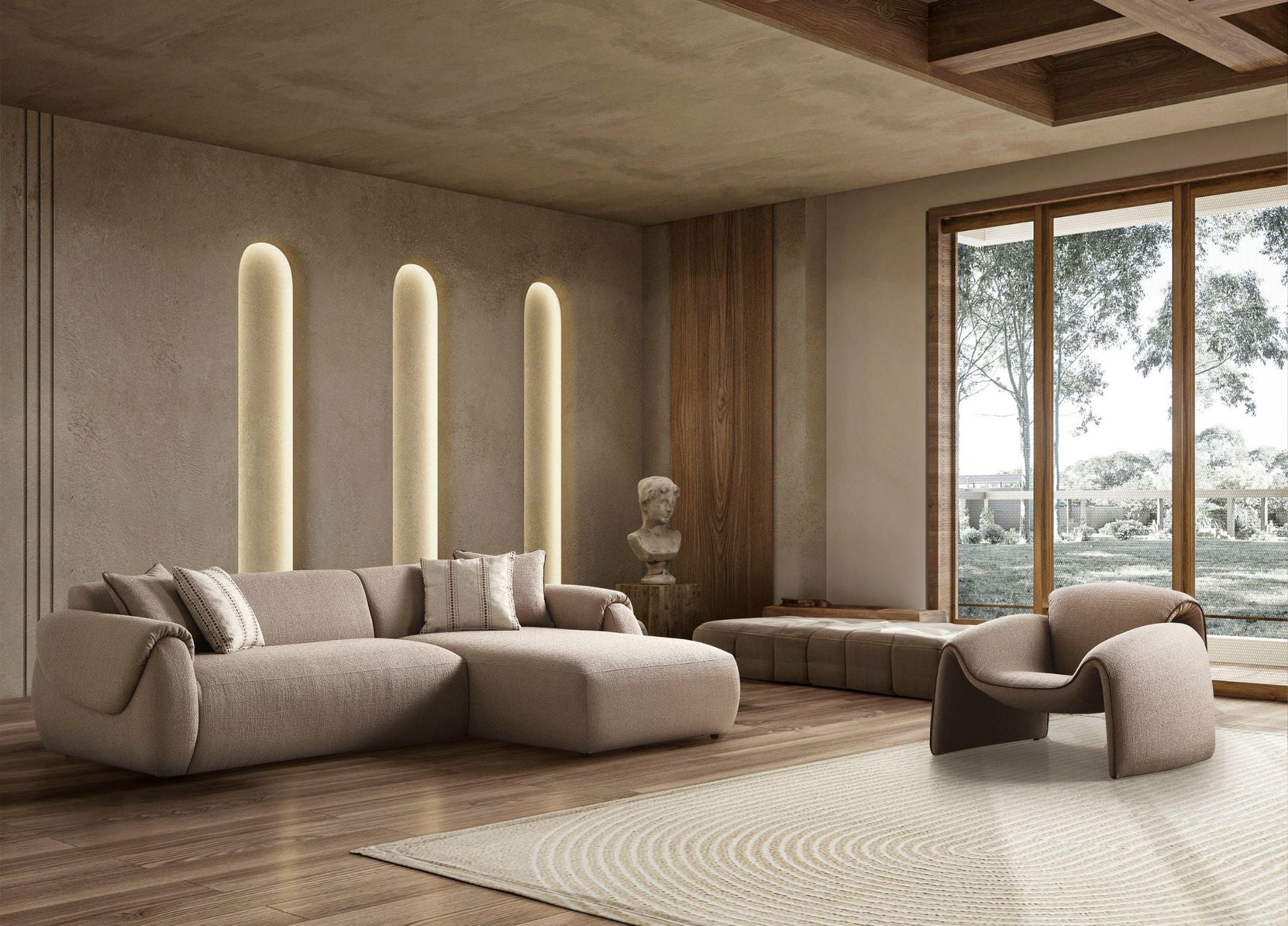 Elegante e invitante, il divano componibile Curves è progettato per il massimo comfort. Con i suoi morbidi cuscini e le curve morbide e avvolgenti, crea il rifugio perfetto per il relax. La chaise longue invita a distendersi e rilassarsi, trasformando ogni momento in una fuga di tranquillità. Che sia per serate intime o per incontri informali, questo divano unisce calore ed eleganza, trasformando il vostro spazio abitativo in un vero e proprio santuario.