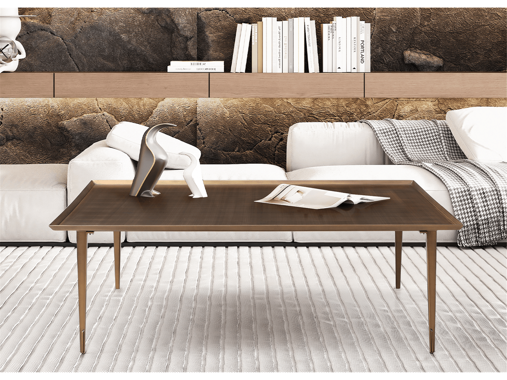 Il tavolino Darla, con il suo design semplice e accattivante, è disponibile con struttura in bronzo spazzolato.