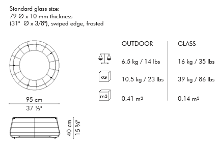 Dimensioni : 95 cm x 95 cm x 40 cm