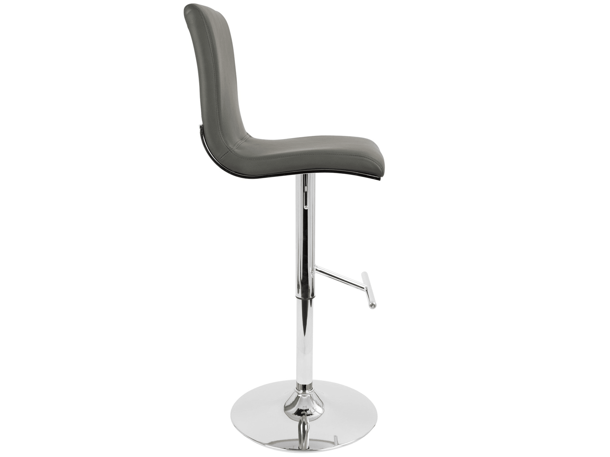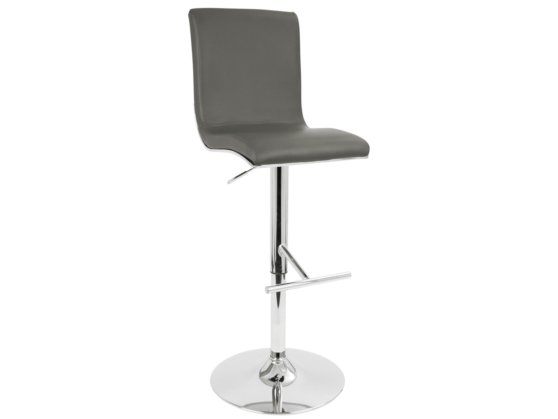 Una nuova interpretazione del classico sgabello da bar. Una seduta ergonomica in similpelle curva si adagia elegantemente su elementi cromati, contribuendo a sottolineare la bellezza discreta della semplicità. Un poggiapiedi dritto e una base cromata si uniscono saldamente per completare questo look.